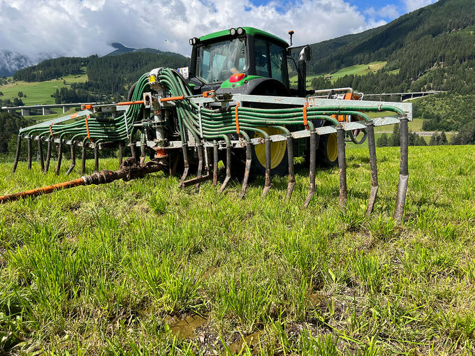 Ein Blick über die Grenze genügt: In der Schweiz sowie in Deutschland gilt die bodennahe Ausbringung von flüssigen Wirtschaftsdüngern bereits verpflichtend, wenngleich diese in Deutschland nur für flüssige Wirtschaftsdünger mit mehr als 4,6% Trockenmasse gilt. Flächen in Hanglagen mit mehr als 20% sind ebenso ausgenommen wie Betriebe mit einer Fläche unter 15 ha LN. Für die Praxis bedeutet dies, dass Gülle etwa 1:1 mit Wasser verdünnt werden muss, um weiterhin mit Prallteller oder Schwenkverteiler ausgebracht werden zu dürfen. Ansonsten müssen flüssige Wirtschaftsdünger bodennah ausgebracht werden.