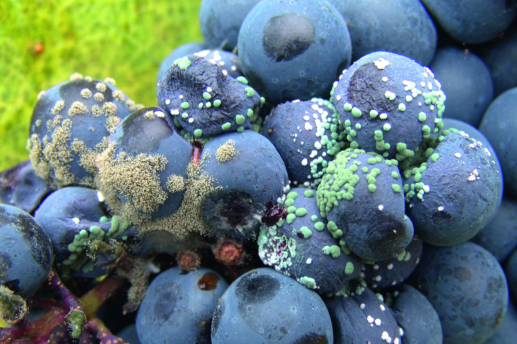 Ein Penicilliumbefall verursacht Fehltöne im Wein. Bei der Traubenernte sind befallene Traubenteile vor bzw. bei der Ernte zu entfernen.